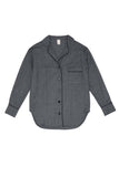 The perfect combination of practicality and contemporary design, this tailored lounge shirt is cut from a high-quality Italian wool flannel blend, which is both incredibly soft and breathable and machine washable too. Mother-of-pearl buttons and delicate black satin trims add a sophisticated finish.